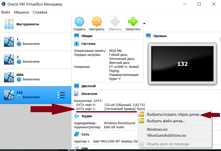 1. Создаем машину и выбираем параметры как у нас на образе ios